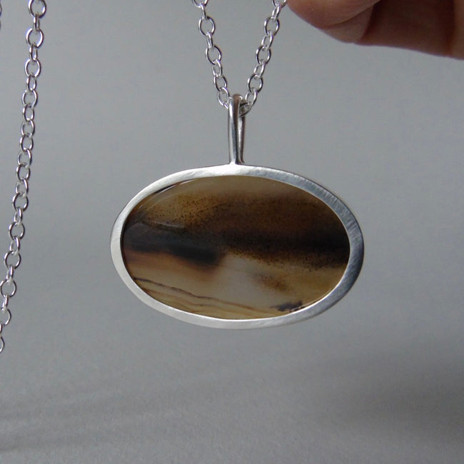 Charm cluster is approx 4.5cm drop by 3.5cm wide. The oval Montana agate cabochon is 33mm wide and 21mm height. The back of the setting is open so you can fully appreciate the swirling starling murmuration captured within the agate. The silver feather is impressed with the texture of a real found feather and is 4.5cm drop by1.8cm wide. The peacock pearl has all the shimmery iridescence of a starling feather.