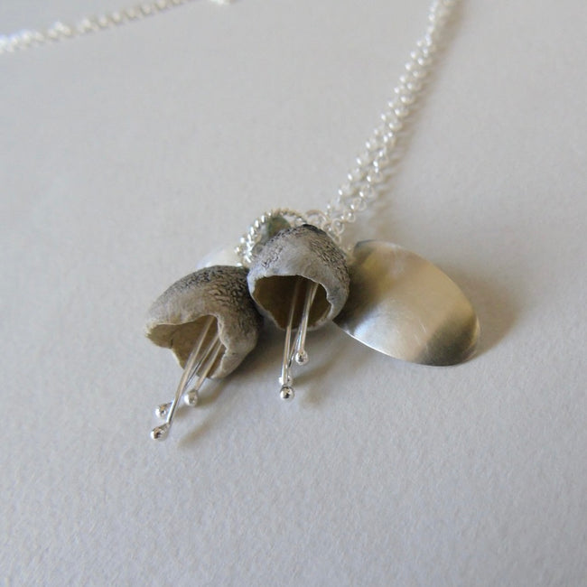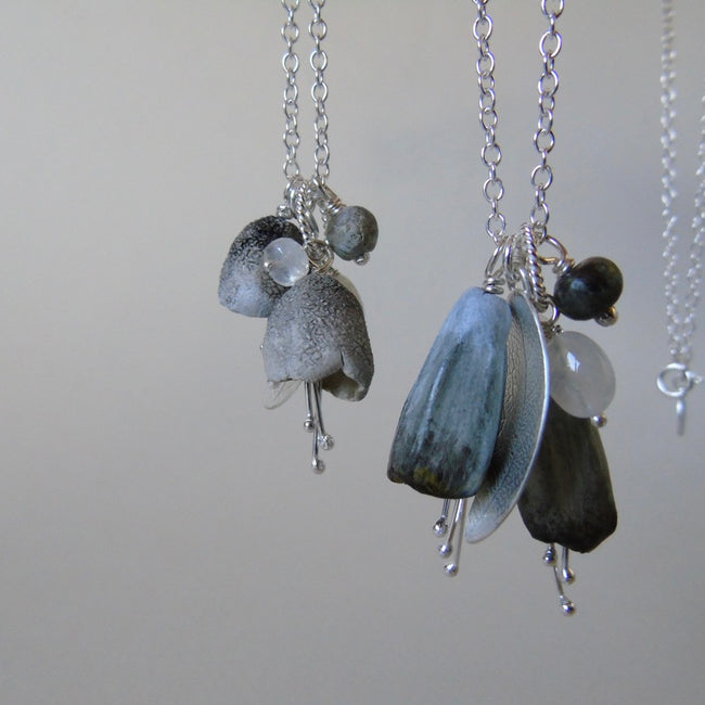 The porcelain pods are handmade by a maker in North Yorkshire. They are kiln fired, coloured and then cold glazed. The necklace should not be worn in water.