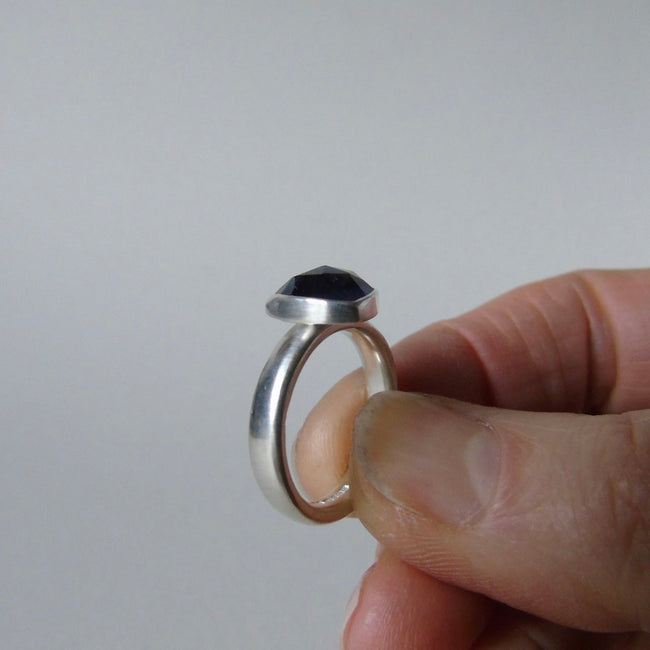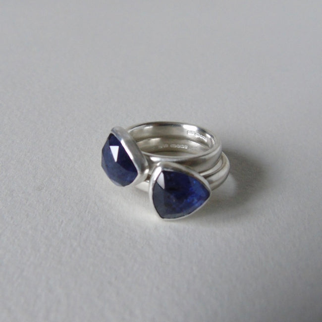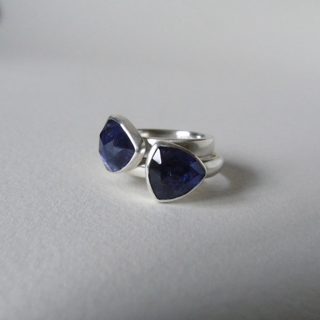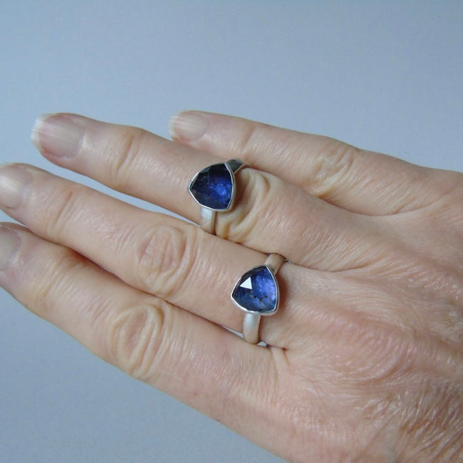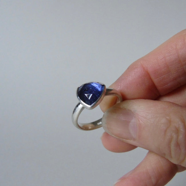 10mm trillion shaped faceted iolite. An inky night sky of an iolite ring with light catching facets.