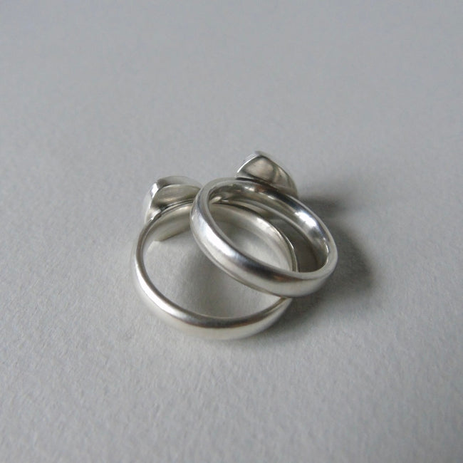 One ring is UK size L1/2 and is simply bezel set on 4mm cushion profile ring shank. Cushion profile is gently curved on the inside and the outside which makes for a comfortable fit.